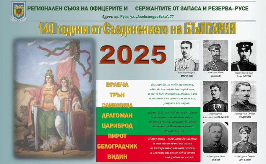 С поредица от тържествени събития в Русе ще бъдат отбелязани 140 години от победата в Сръбско-българската война. Честванията ще се проведат този четвъртък, 27 ноември, под патронажа на областния управител Драгомир Драганов. Организатори са клуб "Родолюбие" при Военен клуб – Русе и Регионалният съюз на офицерите и сержантите от запаса и резерва (РСОСЗР), със съдействието на началника на Регионалното управление на образованието (РУО) д-р Росица Георгиева.