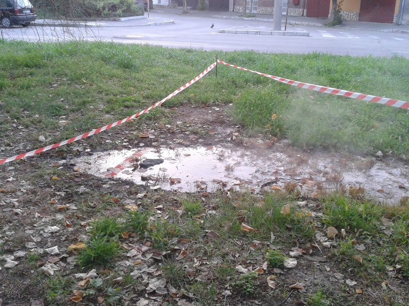 Първите две снимки са направени на 27.08, а третата на 31.08. Не помня колко дни преди първите снимки видях този чудотворен гейзер на алеята на бул. Съединение в отсечката от светофара на ул. Св. Наум към Парка на младежта. Днес е все още такова състоянието му. Ако не става ясно от снимките, ще ви кажа, че извира гореща вода, от която се вдига пара и се образува естествен воден басейн на алеята. Мисля, че е крайно време да се популяризира мястото и да се осъвремени ландшафта по Европейски проект с участието на фондация "Русе - град на свободния дух" (името може да се актуализира на "Русе - град на въздуха под налягане"), да започнат да се събират такси от посетителите и да се вдигнат данъците на живеещите в близост.