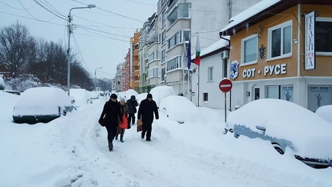 Дунавският град на практика осъмна блокиран. С падналите още 17 см, снежната покривка достигна 40 см средно, но на места има обилни навявания. Снегът затрупа отново и прокопаните пътечки из Русе и хората трябваше отново да газят в преспите, или да вървят по пътното платно, пише 24 часа.