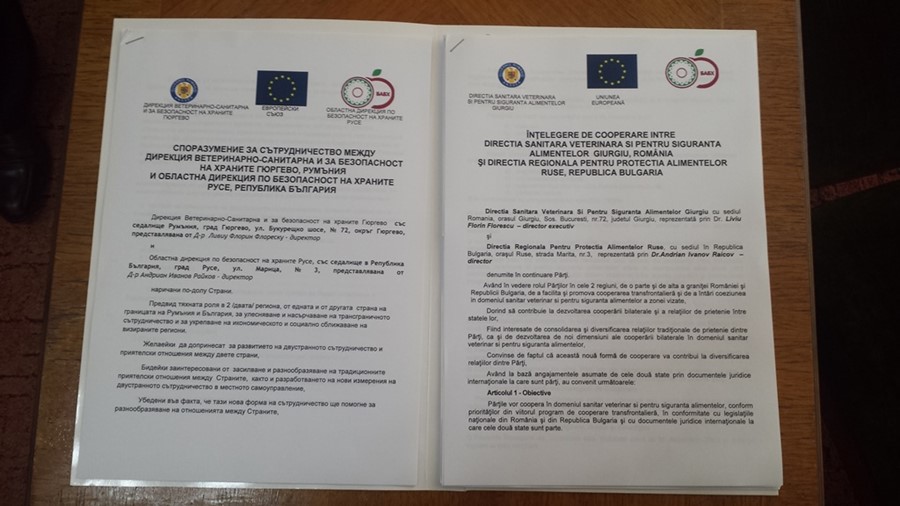 В края на заседанието се подписа подготвеното с активното участие на Асоциация „Еврорегион Данубиус” споразумение за сътрудничество между Окръжна дирекция за Ветеринарен контрол и защита на храните, Гюргево и Областна дирекция по безопасност на храните, Русе.