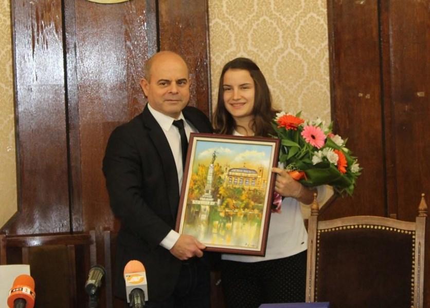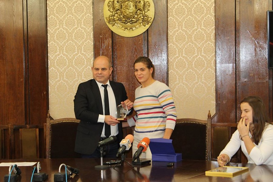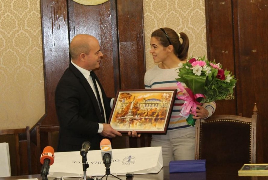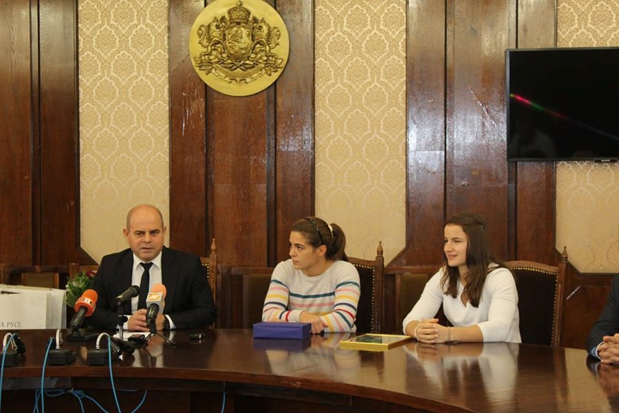 Шампионките по борба Биляна Дудова и Тайбе Юсеин бяха наградени днес от кмета на Община Русе Пламен Стоилов.