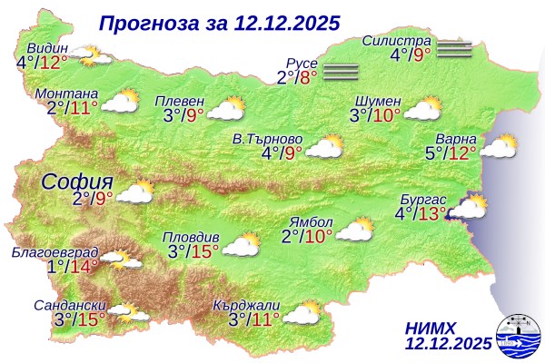 Днес (12 декември) на много места в Дунавската равнина, Лудогорието и Горнотракийската низина времето ще остане мъгливо или с ниска слоеста облачност. За жителите на Русе и региона това означава намалена видимост в сутрешните часове. Добрата новина е, че след обяд се очаква появата на до умерен вятър от запад-северозапад, който ще помогне за разсейването на инверсионната облачност и видимостта ще се подобри.