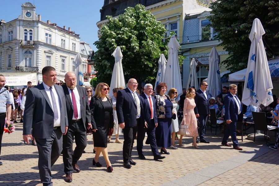Малко след това председателят на местния парламент се присъедини към празничното шествие, започващо от ПГ по дървообработване и вътрешна архитектура „Йосиф Вондрак“, с представители на всички учебни заведения. То беше съпроводено от маршове, изпълнени от Общинския духов оркестър с ръководител маестро Димчо Рубчев и барабанчици от Националното училище по изкуства „Проф. Веселин Стоянова“. В него се включиха и мажоретният състав „Екстрйм“ и Младежкият гвардейски отряд към Общински младежки дом.