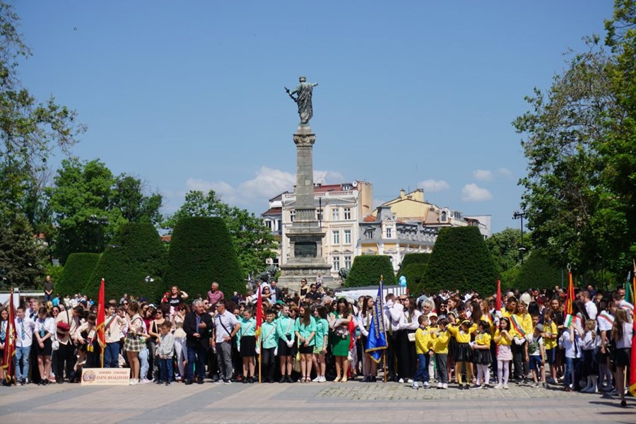 „Няма друг празник, който да се празнува толкова дълго. 172 години празнуваме 24 май. Смело можем да кажем, че това, в исторически план, е един от най-сериозните празници в Европа“, каза още Пазарджиев и традиционно се обърна към дванайсетокласниците от гимназията с пожелания за добра реализация и щастливи дни.