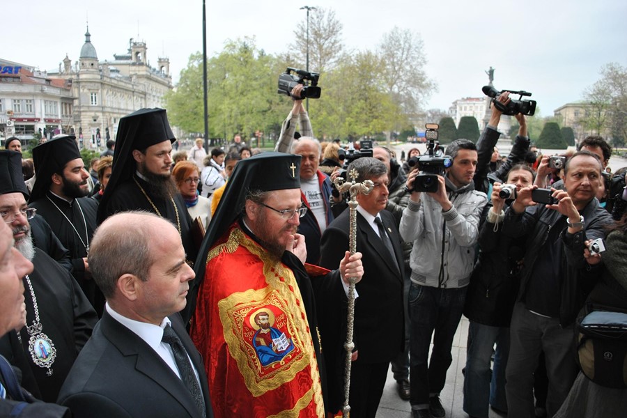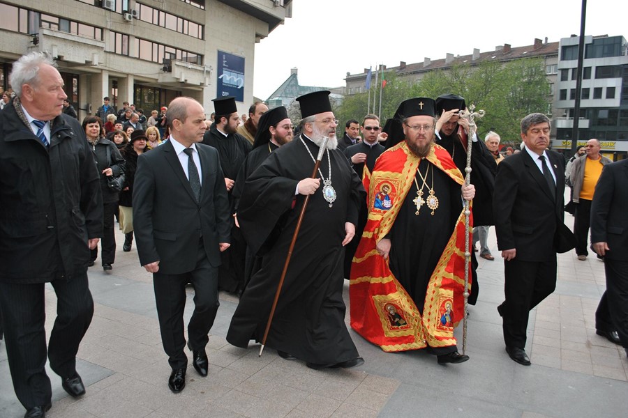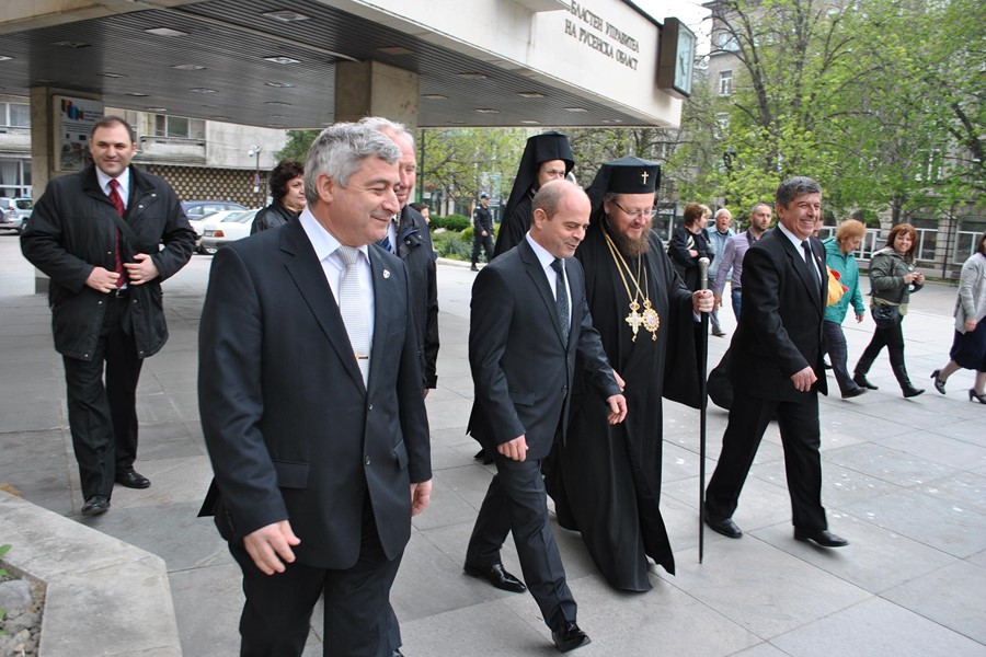 «Църквата винаги е била онази институцията, в която хората имат най-голямо доверие. Уверен съм, че ще работите за нейния авторитет, за единение, за съзидание, за достоен живот и напредък”, каза в приветствието си г-н Стоилов. „Вярвам, че ще работите за връщане към традиционните християнски нравствени ценности, тъй като именно те са ни съхранили като народ през вековете”, допълни кметът Стоилов и поднесе на новия митрополит пластика на закрилника на Русе Св.Георги Победоносец, дело на скулптура Илиян Шарков.