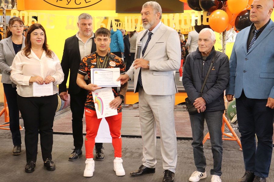 Той каза, че състезателите от Българската федерация по вдигане на тежести трябва да проявяват не само мускулна сила, но и такава на разума и сърцето. "Благодаря на проф. Панайотов, че не спира да влага средства в децата ни. Това е сила на цялата местна общност. Благодаря на треньорите, които създават от децата не само спортисти, но и наистина зрели граждани, хора за пример", допълни кметът и връчи плакет на Дениз Данев.