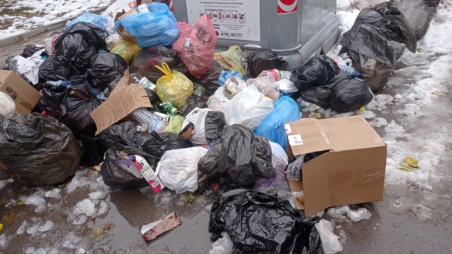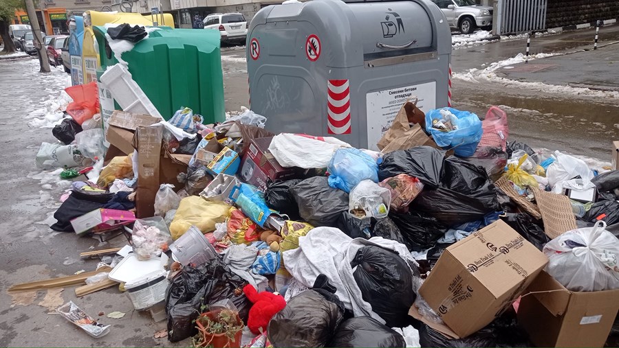 Снимки от мрежата показаха бедствено положение в Русе. Този път на фокуса на русенци са не падналите клони и снежни улици, а огромно количество отпадъци покрай градските кофи за смет.