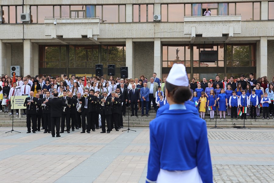 Той поздрави всички ученици, учители, дейци на просветата, науката, културата изкуството и всички гости в град Русе с най-хубавия, най-истинския, най-обичания, най-българския