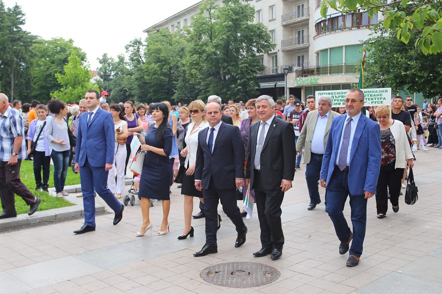 Началото беше поставено в 10:30 ч. с шествие по главната улица на града, по която преминаха ученици от всички русенски училища и деца от детски градини, водени от мажоретки и от Общински духов оркестър. Двата лъча тръгнаха от пл. „Батенберг“ и от края на ул. „Александровска“ при Паметника на Съветската армия по посока пл. „Свобода“, където кметът г-н Пламен Стоилов ги приветства по случай празника.