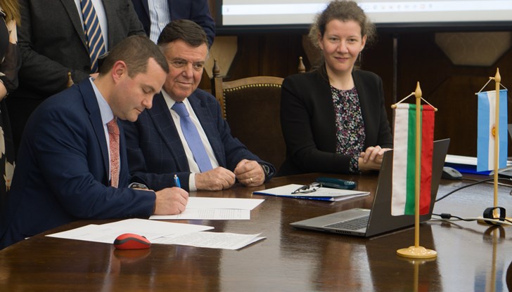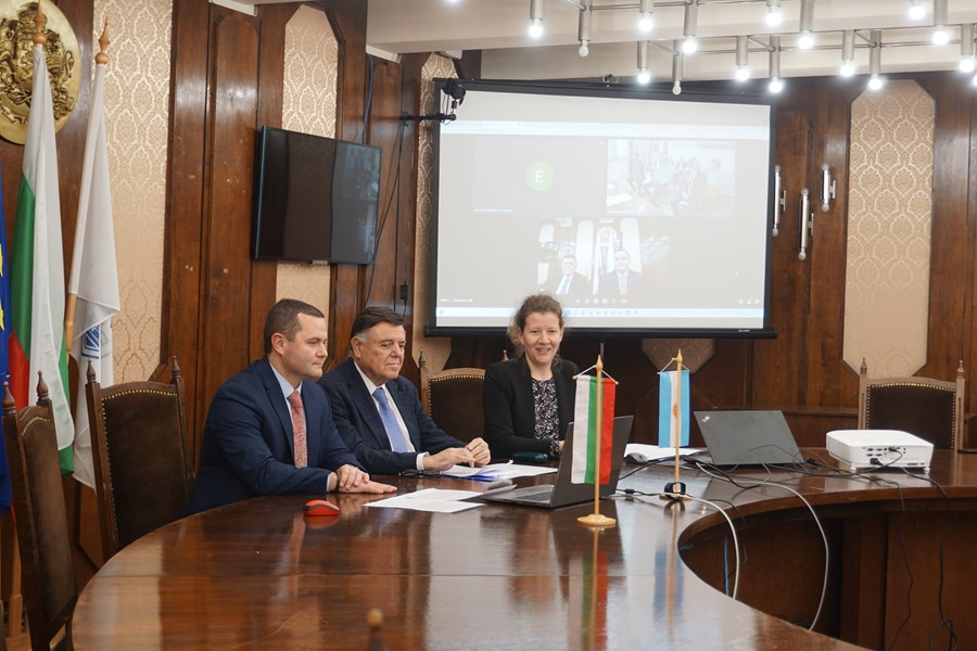 Специално за подписването на споразумението в Русе пристигна посланикът на Аржентина у нас Н.Пр. Алфредо Нестор Атанасоф. На онлайн срещата от българска страна присъстваха и зам.-кметовете Златомира Стефанова, Димитър Недев и Енчо Енчев, както и директорът на дирекция „Международни политики, стопански дейности и анализи“ Ивайло Кадишев.