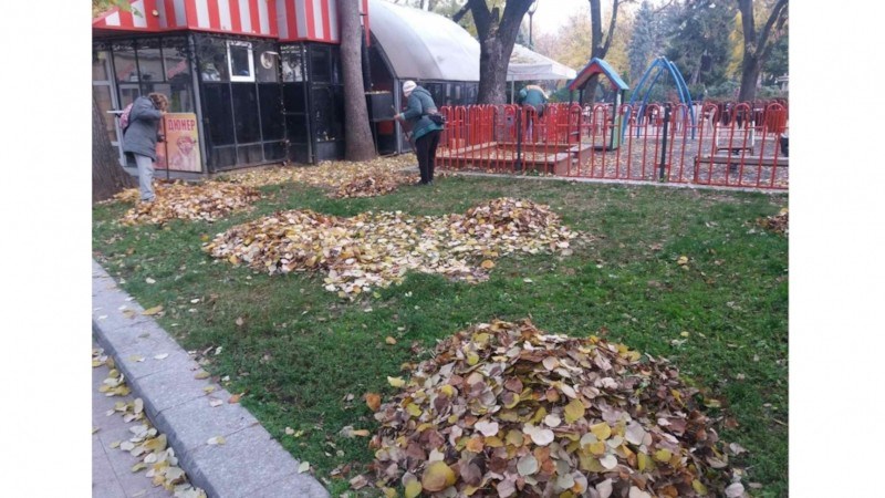 Продължава усиленото почистване на паднали листа и кестени в целия град.