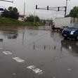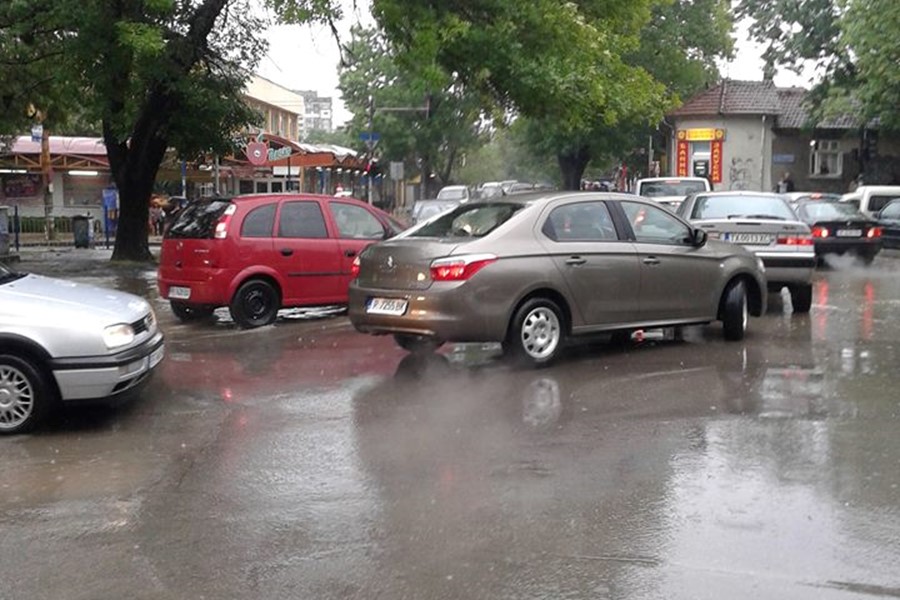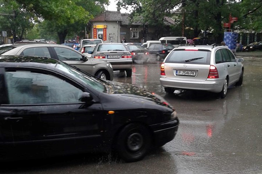 Някакъв ад цари в целия град. Целият булевард "Скобелев" - блокиран. Както виждате от снимките има и "потънала" патрулна кола. Паркингът пред блок "Бозвели" - мазало! Пазара - блокиран! Светофарите не работеха даже, ама нямаше и нужда.