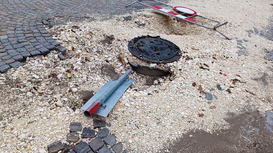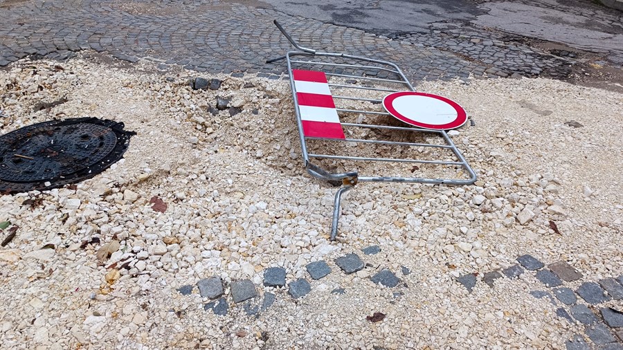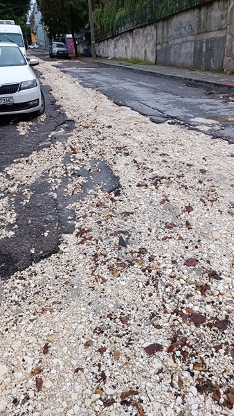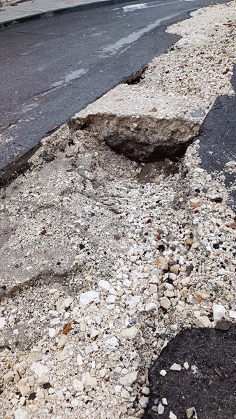 Разкопаните участъци, които са посипани с камъни, потънаха на места, а камъните "заплуваха" по пътните платна. В резултат доста автомобили пропаднаха, а други се изпочупиха.