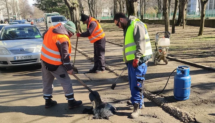 Общинското предприятие „Комунални дейности“ в Русе започна масирана кампания за изкърпване на компрометираните пътни участъци след зимните месеци. Дейностите са насочени към запълване на дупки, отворили се вследствие на обилните валежи и ниските температури, съобщиха от пресцентъра на местната администрация.До обяд днес екипите приключиха работа по улиците „Изгрев“ и „Студентска“, както и по бул. „Цар Освободител“. Ремонтите продължават следобед по булевардите „Съединение“ и „България“, където настилката е в най-тежко състояние.