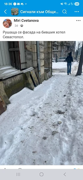 В сърцето на Русе се разиграва съвременна управленска трагикомедия. Главен герой е бившият хотел „Севастопол“ – сграда с безспорна културна стойност, която днес предлага на русенци екстремното преживяване да тестват рефлексите си под дъжд от мазилка. Докато парчета с тегло по 2-3 килограма се стоварват върху тротоара на улица "Отец Паисий" – само на стотина метра от детска градина, местната власт демонстрира завидни умения в дигиталната цензура, но не и в реалните действия.