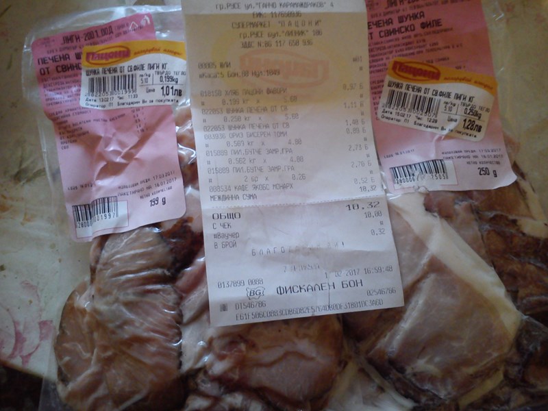 След като платил на касата обаче, бил неприятно изненадан от явното разминаване в цените. Оказва се, че сумата за килограм, описана върху етикетите на продуктите, е различна от тази, маркирана на касовата му бележка. И разбира се ... на касовия бон е по-висока.
