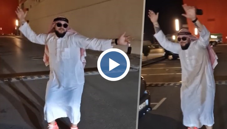 Русенец се раздава в кръшен танц, облечен като жител на Обединените арабски емирства