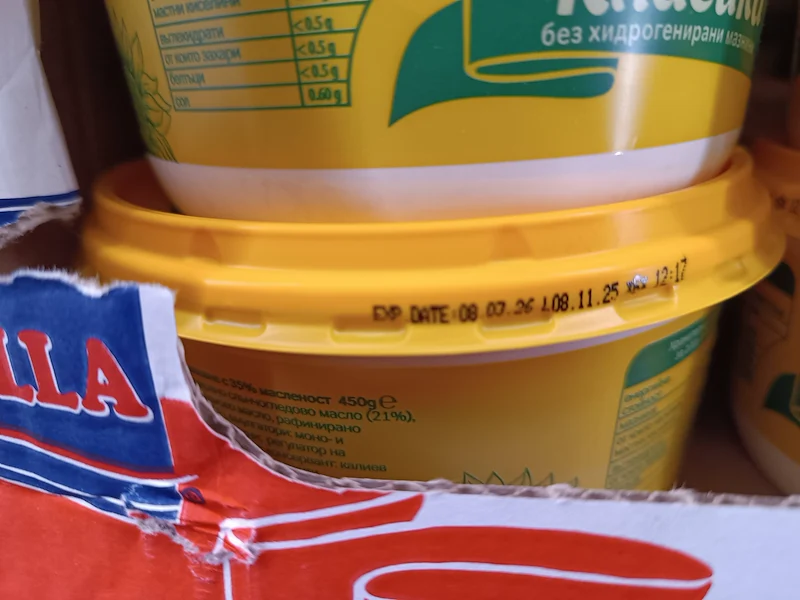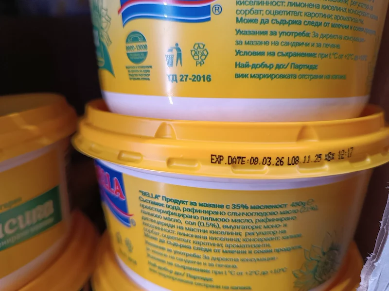 Вместо прясна стока, клиентът се е натъкнал на хранителен продукт, чиято консумация крие потенциални рискове за здравето. Става въпрос за маргарин от марката "Белла", при който са засечени две различни, но напълно изтекли дати на годност.