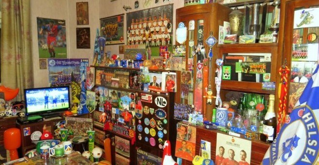 Футболни артикули могат да бъдат видени навсякъде в дома му, но нищо не може да се сравни с т.нар. „футболна стая”. Стените, шкафовете, чекмеджетата, масата, вратата – всичко е обсипано със сувенири от цял свят, досущ като истински музей. И това, което се вижда на пръв поглед, е само малка част от всичко събрано.