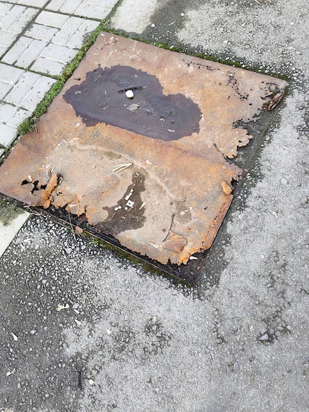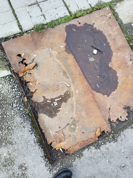 Основен акцент в гражданското недоволство е силно корозирала метална шахта, намираща се на пешеходен тротоар на булевард "Неофит Бозвели". Предоставените снимки показват, че съоръжението е в критично състояние, с огромни дупки в изтънелия метал, което създава реална предпоставка за тежък инцидент с преминаващи пешеходци – особено в тъмните часове на денонощието.