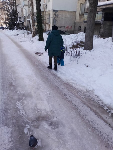 Жителка на русенския квартал "Дружба 1" сигнализира за сериозен проблем с обледени тротоари и улици край блок "Васил Коларов". Сигналът идва от Валерия Иванова, която публикува гневен пост във Фейсбук, група "Русе".