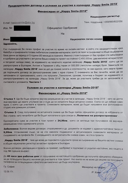 Оказа се, че звънят от различни номера, че имат няколко електронни пощи и че името на конкурса е различно. Един път е „Happy Smile“, а друг път е „Happy Faces”. Видно е, че всяка година сменят информацията, но смисълът, парите и документите са едни и същи.