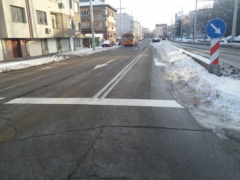 К. Борисова е снимала бул. "Скобелев" в района близо до бензиностанция "Лукойл". На кадъра се вижда, че трилентовият път всъщност ... няма трета лента! Толкова зле е почистен, че на русенци им идва да си купят по един трактор и сами да почнат да ринат, за да ходят на работа...