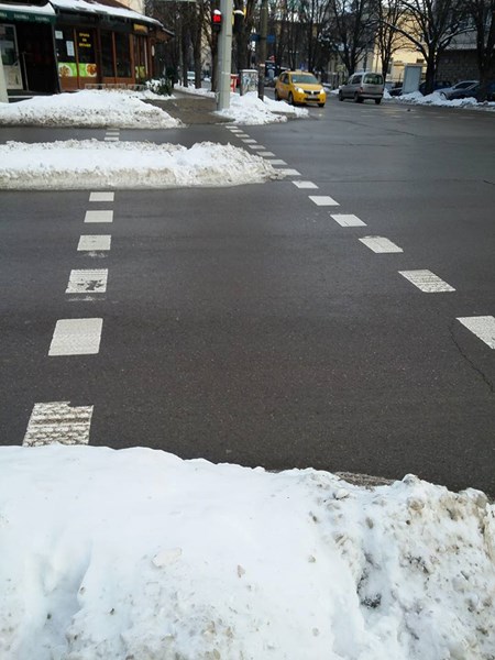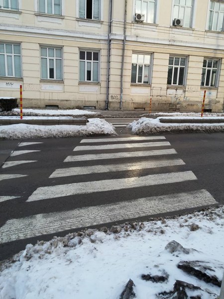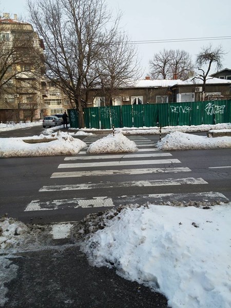 К. Борисова показа още снимки от затрупани пешеходни пътеки, водещи не къде да е, а към "уж" централни училища в Русе - Математическата гимназия и ПГИУ "Елиас Канети" /бившият Икономически техникум/.