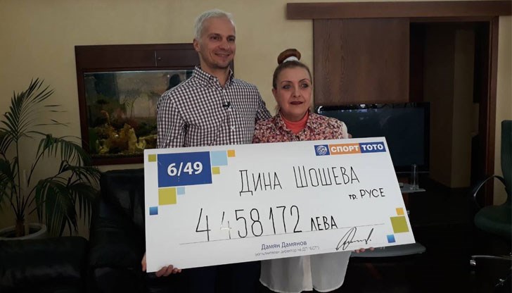 Дина Шошева от град Русе е късметлийката, която спечели 4 458 172 лева в играта „Тото 2 - 6 от 49“.