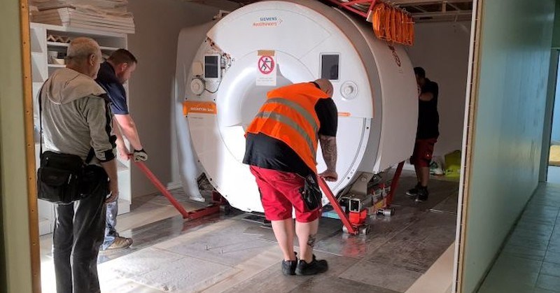 Ултрамодерният апарат за ядрено-магнитен резонанс Siemens Magnetom Sola вече пристигна в УМБАЛ "МЕДИКА РУСЕ“. Той е един от малкото в България с най-високото ниво на оборудване. Разполага със система за изкуствен интелект, която позволява автоматичното откриване на проблемните зони на пациента и минимизира рутинните задачи по време на изследването, чрез което се съкращава и неговата продължителност. В момента сложната апаратура се монтира съвместно от екипи от три държави – Германия, Румъния и България, съобщиха от лечебното заведение.