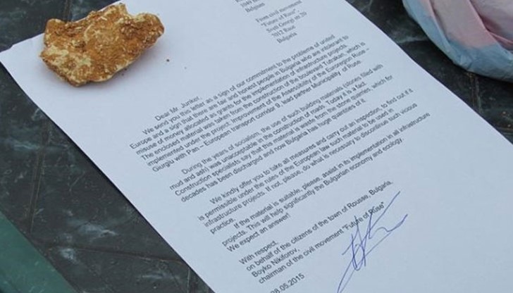 По повод публикация във в. Утро от 29 май 2015г. със заглавие „Колет с камъни до Юнкер стигна до ДАНС и Цацаров” моля да публикувате следното: Намирам статията за неточна и създаваща невярно впечатление в читателите Ви, по отношение на мен, гражданско движение “Бъдеще за Русе” и дейността, която развиваме. В статията е написано, че с изпращането на колет до президента на Европейската комисия, търся публично внимание. Истината е, че имам достатъчно честни и интелигентни приятели с които се гордея и повече от това не ми е нужно. Смисълът на пратката до г-н Юнкер е точно написан в придружителното писмо и моля да публикувате неговият пълен текст, за да узнаят читателите за какво става дума.