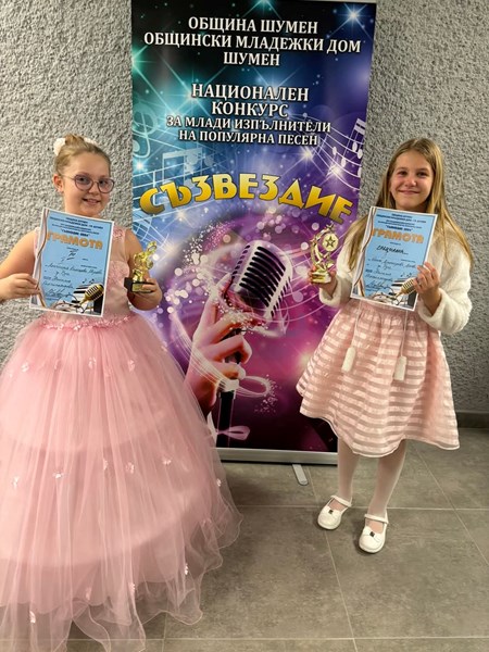 Трима солисти на Детска вокална група "Слънце" при Общинския детски център за култура и изкуство - Русе постигнаха забележителен успех на XIV Национален конкурс за млади изпълнители на популярна песен "Съзвездие 2024" в град Шумен. Младите таланти се представиха под ръководството на д-р Наталия Константинова.