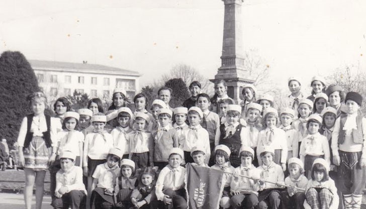 Снимката представя русенски ученици на екскурзия до места, свързани с националноосвободителното движение. Тя е направена през 1972-1973 г. и показва деца в училищни ученически униформи със сини връзки – чавдарчета.