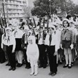 Празник на ТНТМ (Техническо и научно творчество на младежта) в училище „Олимпи Панов“, град Русе, България, 1970 г. В средата се вижда пионерски отряд „Мара Манева“ при 6А клас, облечени в униформа – бели ризи, тъмни панталони или поли, червени връзки и калпак с лъвче (символ на националната революция през XIX век, с която се асоциира комунистическата революция). Водачите на „отряда“ държат тризъбци, а пред тях стои дете в костюм на космонавт („прогресът“ е изключително силна идеологема, а покоряването на космоса е символен връх на техническия прогрес). Празникът се провежда в двора на училището, в квартал „Родина“ сред панелни блокове.