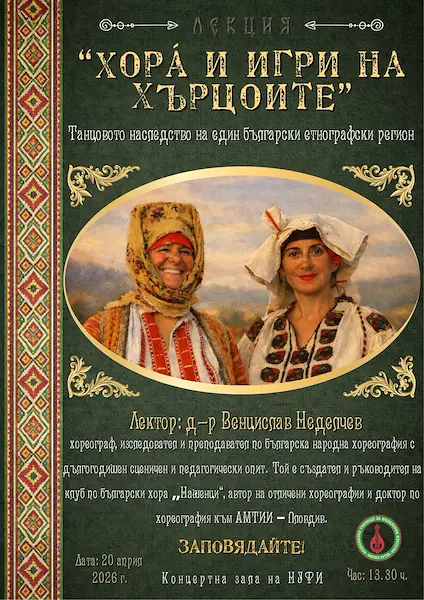 Фокусът на лекцията падна върху една малко изследвана, но изключително съществена част от родната танцова традиция – хърцойския фолклор. Д-р Неделчев, който е дългогодишен ръководител на русенския клуб „Нашенци“ и наскоро защити докторантура по темата в пловдивската Академия за музикално, танцово и изобразително изкуство, разкри пред бъдещите професионални артисти характерните белези на танците от този специфичен етнографски регион.