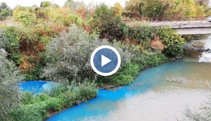 Водите на река Русенски Лом се оцветиха в електриково синьо.