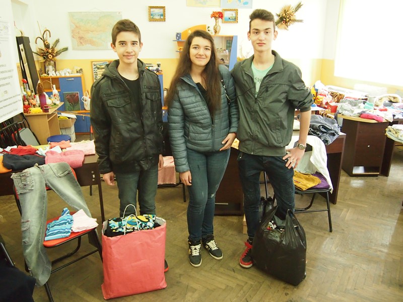 След това и в кампанията „Да подарим усмивка”, организирана от психолога на училището – г-жа Таня Кюранова и ученическия съвет. Младите парламентьори помогнаха с дрехи, които след това ще бъдат раздадени на нуждаещи се хора от града.