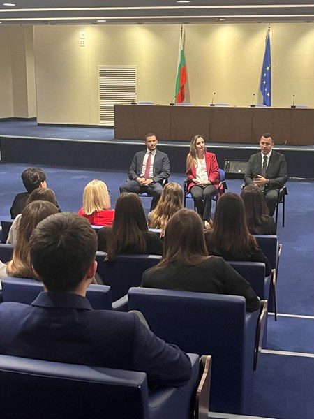 Кулминацията на академията бе посещението в Народното събрание вчера, 28 ноември. Младежите бяха посрещнати в сградата на парламента по покана на народния представител Биляна Иванова. Тя, заедно с колегата си от Русе Георги Кръстев и председателя на Комисията по младежта и спорта Габриел Кирилов, проведе задълбочена дискусия с учениците.