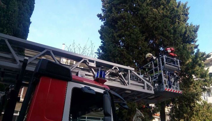Вчера вечерта спасители от сектор СОД при РДПБЗН Русе са извършили действия по спасяването на птица, която е била оплетена в клоните на дърво.