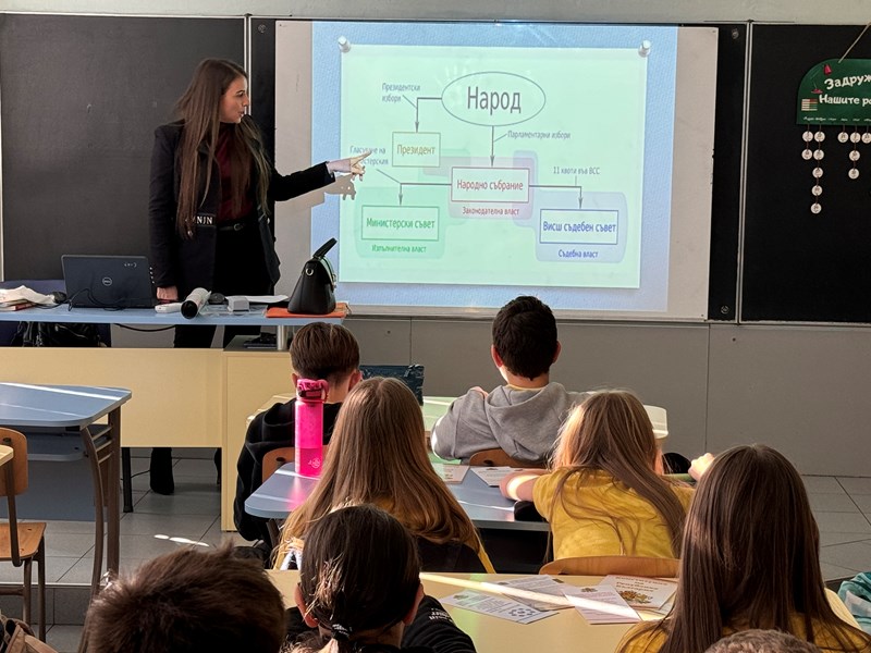 Магистратът разясни на учениците процедурата за придобиване на магистратска длъжност и последващото обучение в Националния институт на правосъдието. Особен акцент бе поставен върху важността на независимостта на съдебната власт от законодателната и изпълнителната власт.