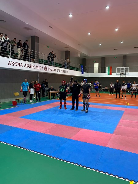 В турнира по кикбокс се представихме с двама участници. Конкуренцията бе изключително голяма, с участието на национални състезатели от Спортната академия и от Академията на МВР. Отлично се представи в категория до 74 кг. и в двата стила „кик лайт" и лайт-контакт първокурсникът Айхан Ахмедов, студент в специалност „Право". В първия стил той достигна до финалната среща, но непредвидена контузия го остави на второто място. А в следващия стил се пребори успешно за бронзовия медал. Другият наш представител Красимир Метев (категория до 79 кг), медалист от предходната универсиада, също много сърцато се състезава, но жребият го изправи срещу шампиона в категорията и остана на петото място.