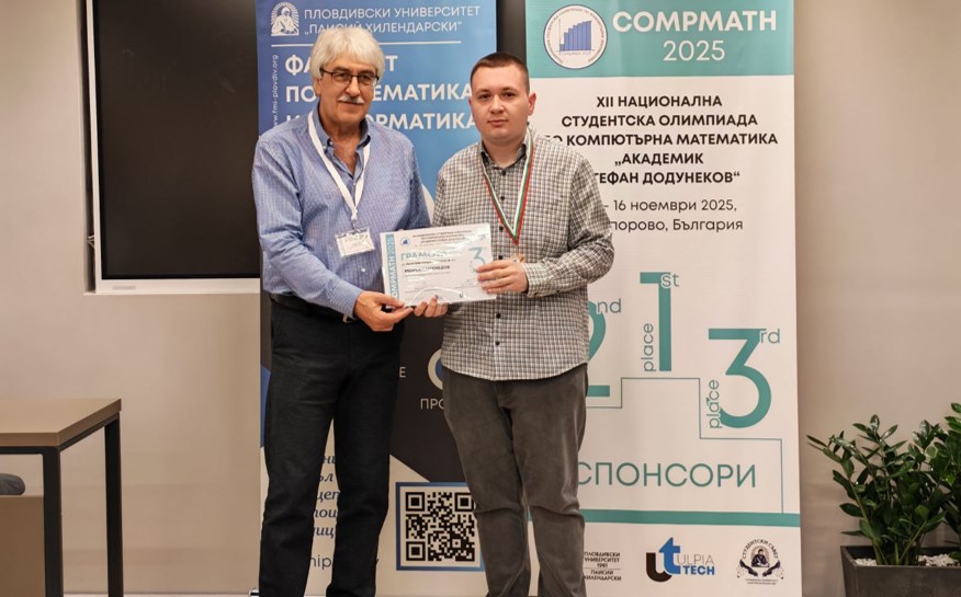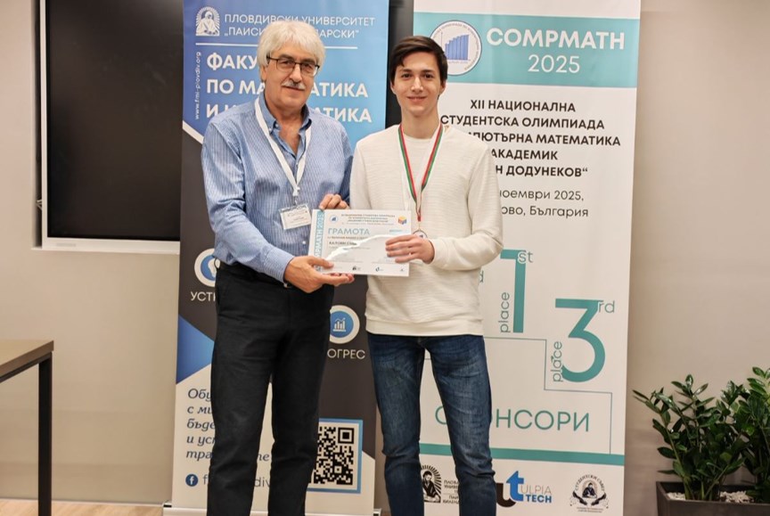Калоян Николаев Събев, студент в 4 курс от специалност "Финансова математика", спечели бронзов медал;