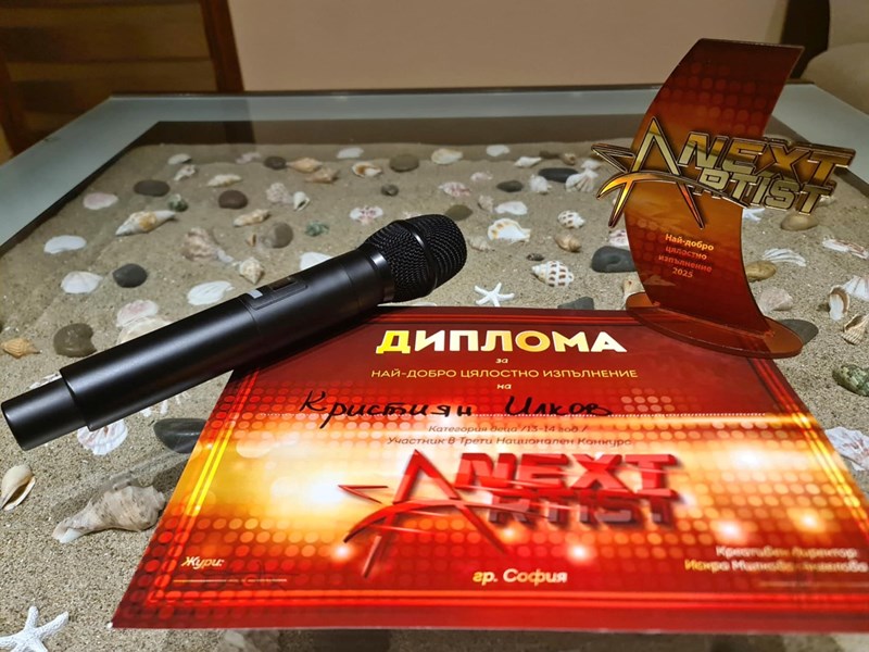 Младият русенски изпълнител Кристиян Илков от студио за поп и джаз пеене „Икономов" към Общинския младежки дом се завърна с престижно отличие от Националния певчески конкурс с международно участие „Next artist". Талантливото момче спечели наградата за най-добро цялостно представяне в групата за 13-14-годишни деца в събитието, което се проведе на 15 и 16 март в столицата.
