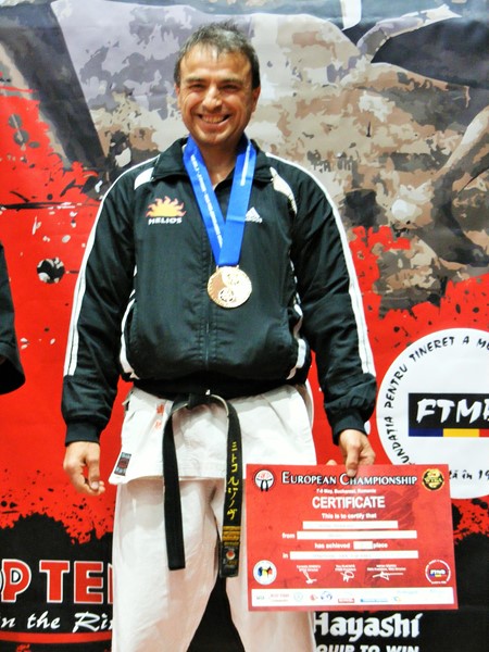 Треньорът на русенския клуб „Хелиос” - Митко Ружинов участва в дисциплината ката в карате надпреварата при мъжете и се завърна с поредно отличие – този път Европейска титла.