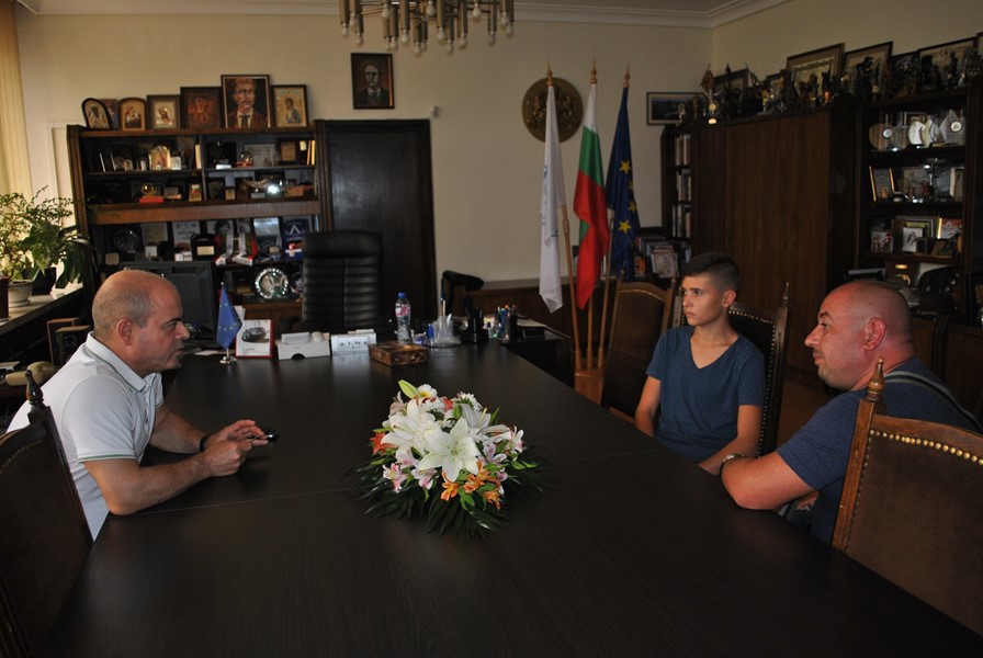 Днес, кметът на Община Русе Пламен Стоилов се срещна в кабинета си с републиканския шампион по картинг на България за 2015 г. – Николай Петров и неговия баща.
