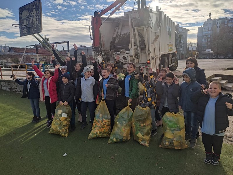 В рамките на месец ноември учениците се запознаха с уроци за разделното събиране на отпадъци, за тяхното рециклиране и повторно оползотворяване и как това влияе върху заобикалящия ни свят и околната среда. На тези и много други въпроси по темата за устойчивото развитие те намериха отговори и допълнителна информация в образователната платформа „Рециклиращо училище! Учители за чиста природа!“. Нещо повече – инициативата привлече не само учениците, но и техните семейства. Заедно те събраха и предоставиха за рециклиране 70 чувала с пластмасови и алуминиеви отпадъци и така помогнаха за чистотата на природата и града, в който живеят.