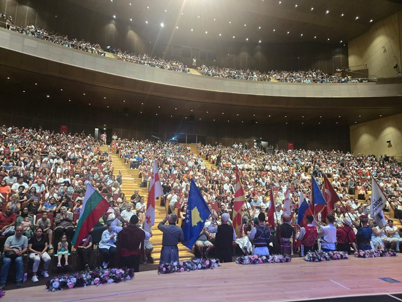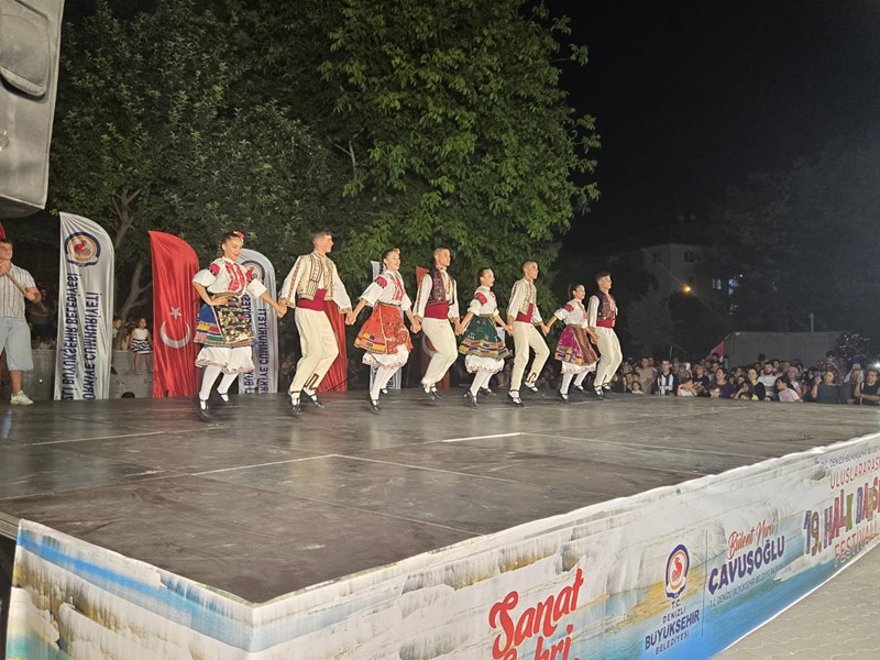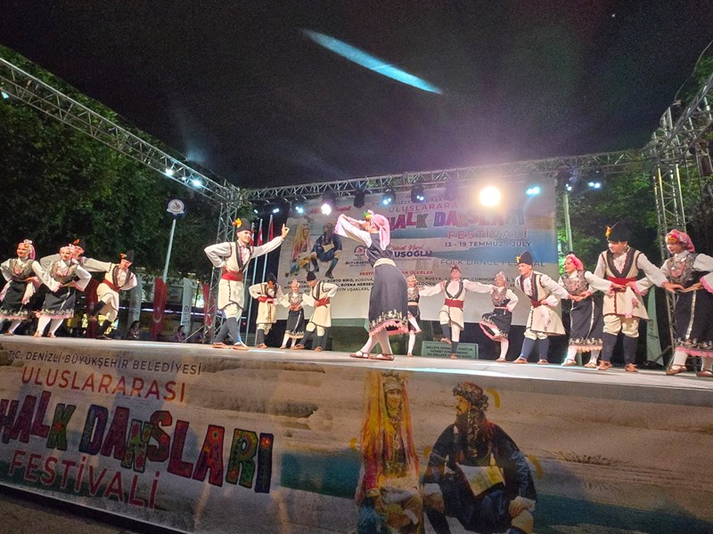 Най-впечатляваща беше гала-вечерта по закриването на фестивала, която се проведе в огромния културен център на Денизли. Сцената с размери 20 на 30 метра едва събра всички участващи ансамбли, предвождани от националните си знамена.