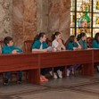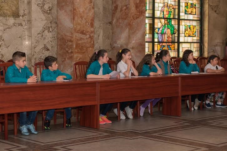 В Мраморната зала децата се запознаха накратко с историята на Русенската съдебна палата и разгледаха витражите, проектирани от професор Иван Пенков и изработени в Германия. Беше им обяснено значението на изображенията, както и на последователността в подредбата на пет от стъклописите в залата, носещи наименованието: 1.Грехът, 2.Съдът, 3.Наказанието, 4.Разкаянието и 5.Изкуплението. На достъпен за учениците език бяха разяснени и основни понятия, като „съд”, „дело”, „престъпление”, „наказание” и др.
