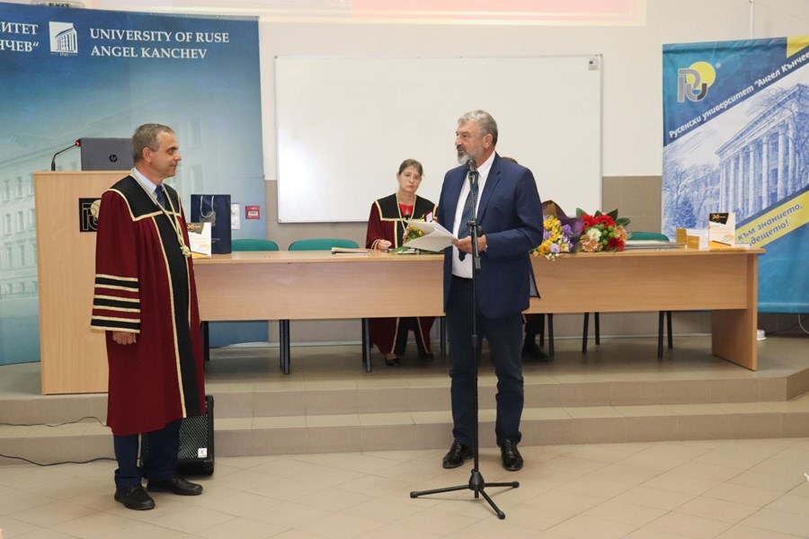 Областният управител на Русе, Драгомир Драганов, уважи събитието със своето присъствие и отличи декана на факултета, професор доктор Велизар Павлов, със знака на Областната администрация. Отличието бе връчено за цялостния принос на професор Павлов към развитието на висшето образование в региона.