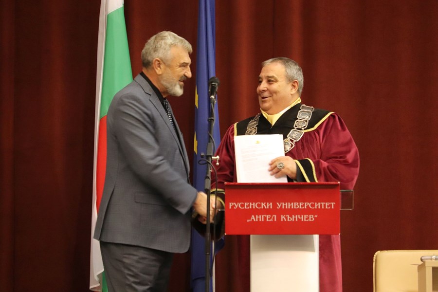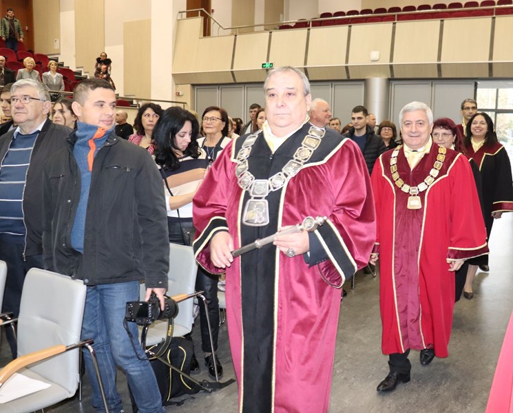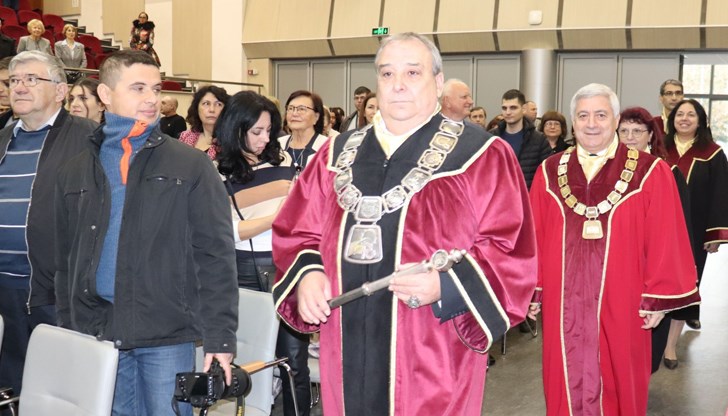 Драганов изрази специални благодарности към ректора на университета проф. Генчо Попов за неговите усилия в управлението и развитието на висшето учебно заведение, както и към почетния ректор академик Христо Белоев, който е изиграл съществена роля в модернизацията на институцията.